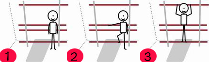 Step 2、 踏稳在最下方的把竿。